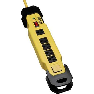 This Tripp Lite surge suppressor is designed to provide safe, reliable surge protection. A high 2700 joule rating can protect connected equipment against even the strongest surges. 6 outlets protect connected equipment against damaging surges, spikes and line noise. Convenient transformer outlets accommodate multiple transformers without blocking other outlets. A 15 ft. grounded cord with integrated cord clip reaches distant outlets. A lighted on/off switch with integrated circuit breaker provides power control over connected equipment. Breaker protects against dangerous system overload. Protected LED confirms that connected equipment is being protected. 4 safety covers shield unused outlets from debris and accidental contact. Built-in cord wrap with hang holes provides convenient cord management. Integrated keyhole slots on bottom panel provide convenient wall/desk mounting. Tripp Lite will repair or replace any connected equipment damaged by surges, including direct lightning strikes, up to $75,000 and for life! As an added safety feature, the surge suppressor's bright yellow color alerts you and others that power cords and tools are in use.