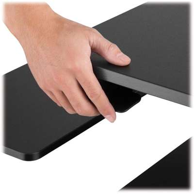 Easy One-Touch Height Adjustment Helps You Find Your Sweet Spot A simple press of the paddle raises or lowers the pneumatic spring arm for easy adjustment. The monitor platform and keyboard tray move together to provide smooth transitions between sitting and standing. Tension can be adjusted according to load (more tension for heavier loads, less tension for lighter items). The monitor platform adjusts between 6.3 and 17.5 inches (16 and 44.5 centimeters) above the work surface.
