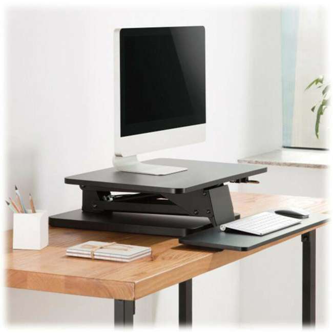 Height-Adjustable Workstation Lets You Move from Sitting to Standing in Just Seconds This Safe-IT™ workstation converts your fixed-height desk into a sit-stand workstation. The WWSSDTAM rests on a flat work surface and rises or lowers to your perfect height with a single touch. By alternating between sitting and standing throughout the day, you can improve your workspace's ergonomics without making any permanent changes to the existing surface.