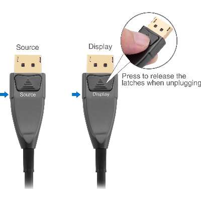 Premium quality DisplayPort 1.2 active fiber optic cable supports high resolution signals up to 4K@60Hz
