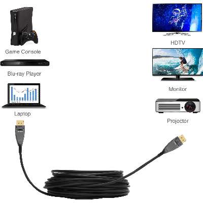 AOC (Active Optical Cable) Fiber/Copper inner conductor material and gold-plated connectors provide maximum video performance, prevents signal loss and screen ghosting